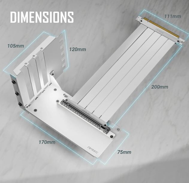 Antec PCI-E 4.0 Riser Cable, x16 High Speed Flexible Extender Card Extension Port 90 Degree Adapter
