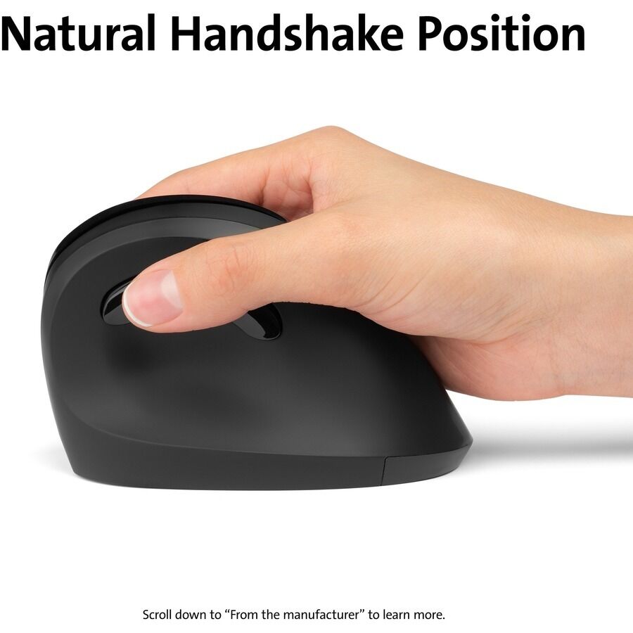 Shake hands with your mouse. The Pro Fit® Ergo Vertical Wireless Mouse, with its natural handshake position, improves wrist posture for better comfort. In an independent study conducted by professional ergonomists, "users rated the vertical mouse as the most comfortable and that it conformed to their hand naturally." Source: 2019 VSI Risk Management and Ergonomics, Inc. study.