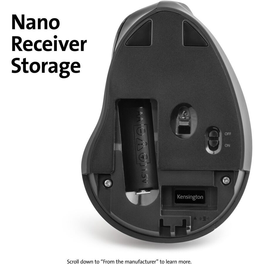 Nano receiver conveniently stores inside mouse when not in use.