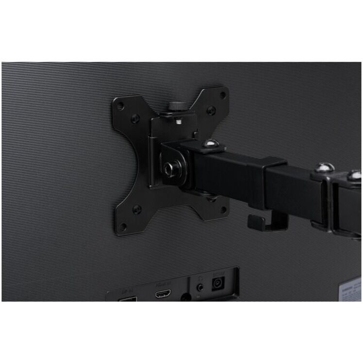 - Quick-release VESA 75/100 mounting plates accommodate monitors up to 32" and 8kg/17.6lbs (per arm).
