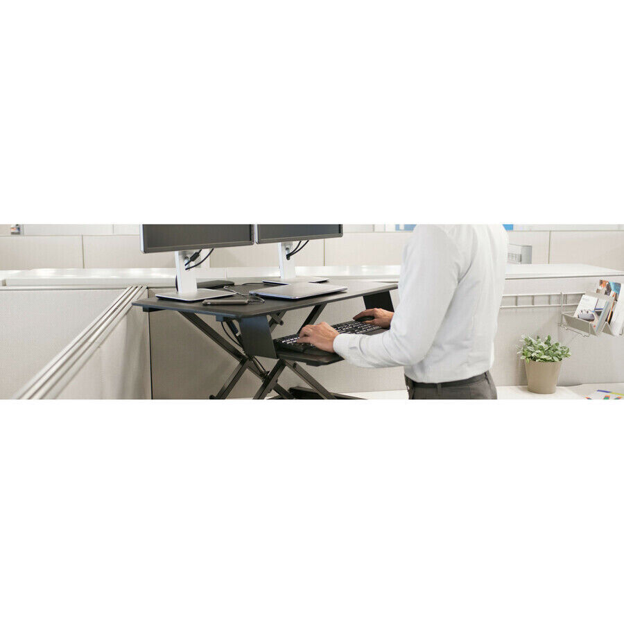 Professional Two-Tier StructureIncrease your productivity and comfort with the wide 35.4in (900mm) desk surface that provides plenty of room for a single or dual monitor setup, documents and other desktop accessories, an integrated deck for the keyboard & mouse, and ergonomically-designed beveled edges to help reduce contact stress.