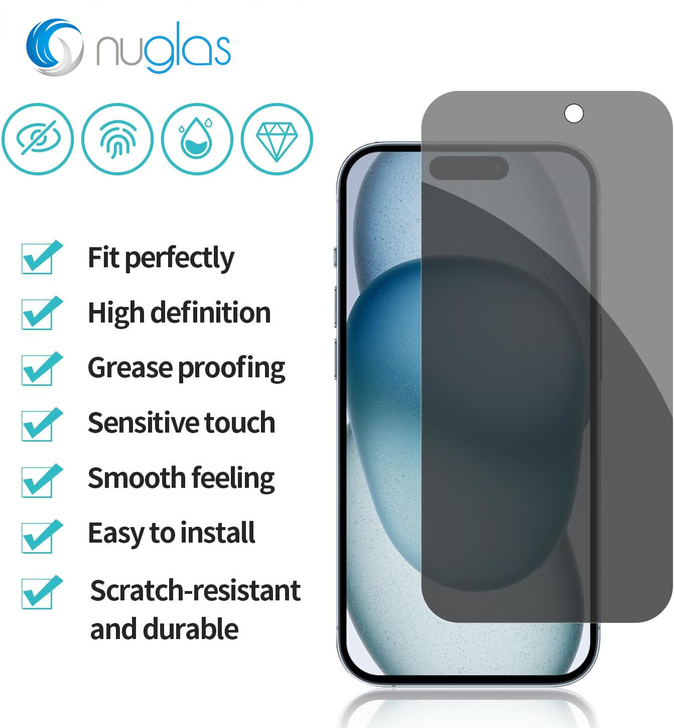 - Nuglas 2.5D Privacy Anti-Spy Glass Screen Protector for iPhone 17 Pro/ iPhone 17/ iPhone 16 Pro