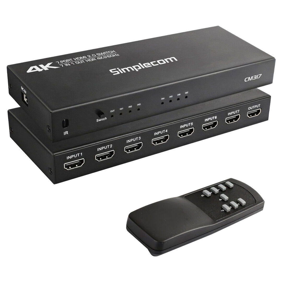 Simplecom CM317 7-Port HDMI 2.0 Switch with Remote 7 IN 1 OUT Splitter HDCP 2.2 4K@60Hz