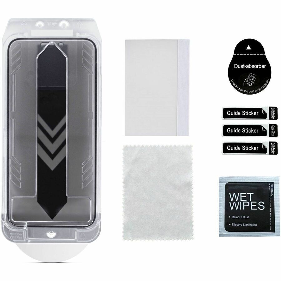 The included applicator frame ensures a quick, precise, and bubble-free installation directly onto the iPhone screen for a long-lasting fit. The tempered glass protector features a precise fit that does not interfere with the sensors around the display, front camera, or earpiece.