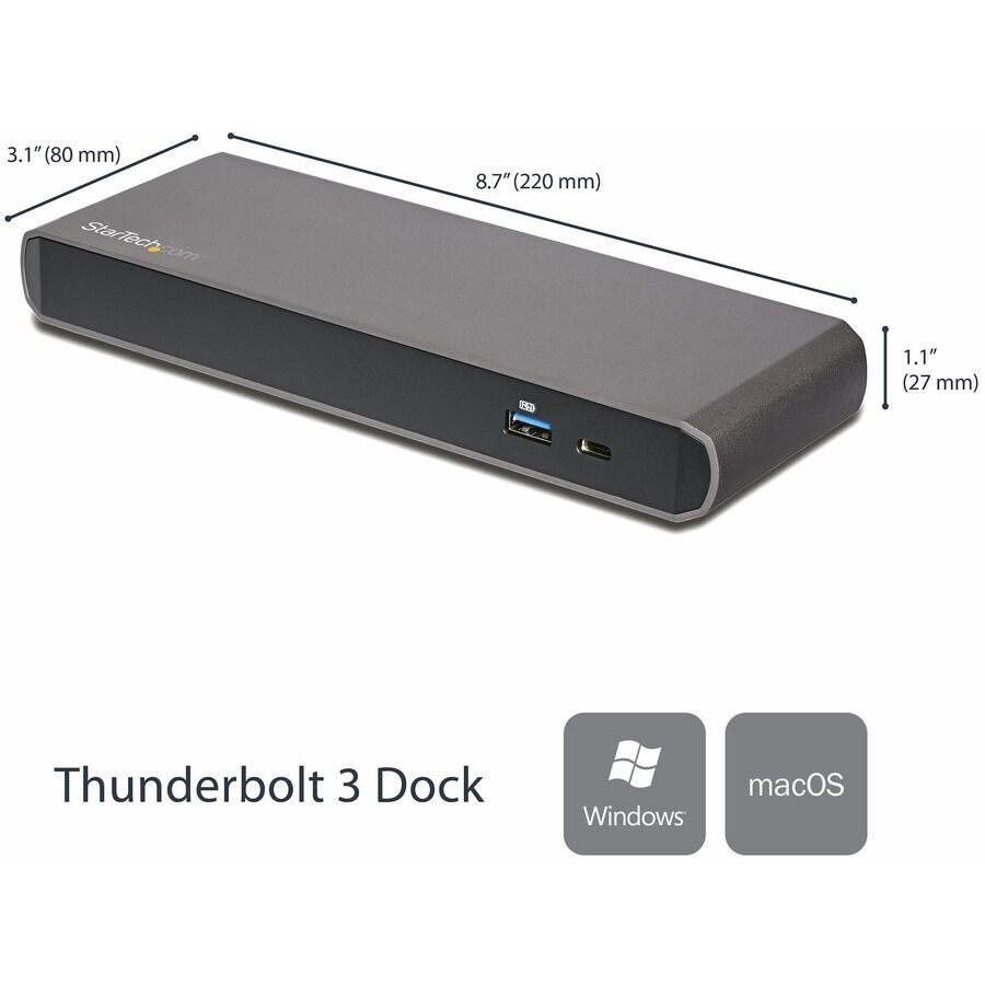 Easily transform your Thunderbolt 3™ equipped MacBook Pro or Windows laptop into a dual-4K workstation with up to 40Gbps of throughput. The high-quality TB3 dock features three USB 3.0 ports, 85W Power Delivery to charge your laptop.