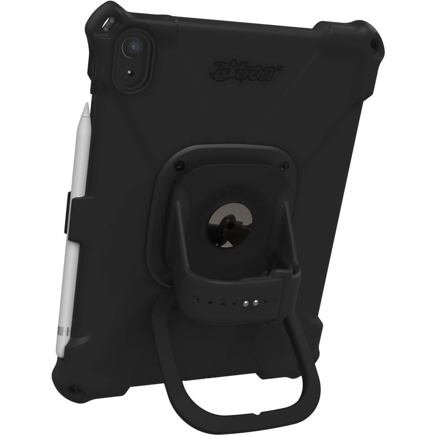 The aXtion Bold MP is a drop proof and water-resistant rugged case for iPad 10.9" 10th generation. It is military-grade certified shockproof, holding a MIL-STD-810H certification. Other protective features include: full screen and camera protection that is built to protect your device from accidental scratches; port and button covers to ensure dust and debris doesn't enter the device's crevices; and reinforced corners to help absorb shock in case of accidental drops. Further case attributes include: a rotating hand strap made of silicone for easy cleaning; a pivoting and multi-angle kickstand featuring anti-slip coating which also doubles as a carrying handle.